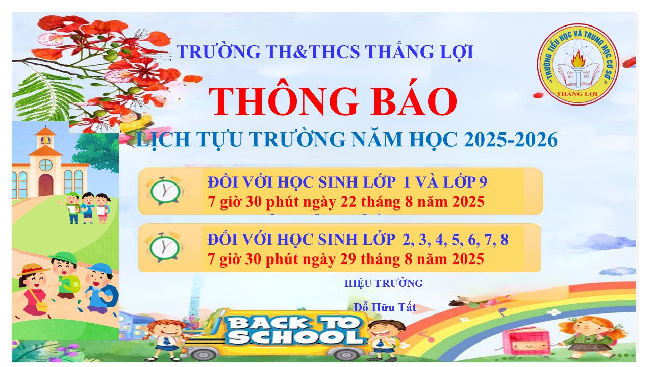 TRƯỜNG TH&THCS THẮNG LỢI THÔNG BÁO LỊCH TỰU TRƯỜNG NĂM HỌC 2025-2026.